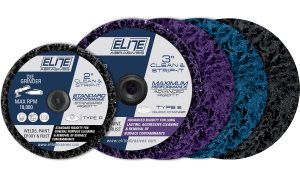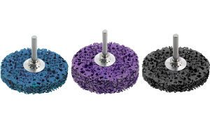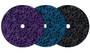 Clean & Strip-It Discs are manufactured using a polyamide fleece impregnated with aggressive abrasive grit particles. They contain a durable resin coating, which ensures long life. These discs are highly versatile and clean metallic surfaces without material removal and are a safer alternative to wire brushes. Primary applications for Clean & Strip-It Discs are removal of paint and adhesives, cleaning of weld seams, removal of welding scale and discoloration (replace wire brush), and surface preparation for auto body work.